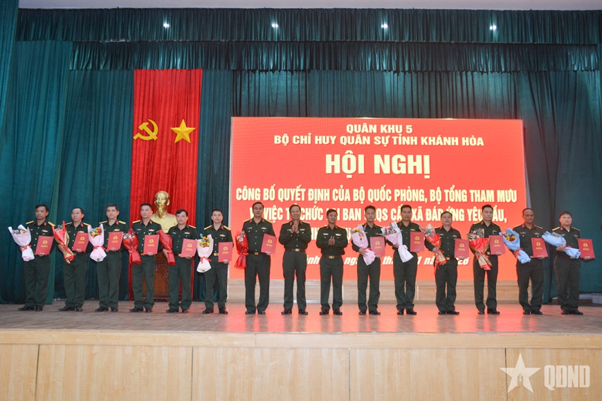Hội nghị cũng công bố Quyết định của Bộ tư lệnh Quân khu 5 về bổ nhiệm 64 đồng chí giữ chức Chỉ huy trưởng Ban CHQS xã, phường; Quyết định của Ban Thường vụ Tỉnh ủy Khánh Hòa về việc chỉ định các Chỉ huy trưởng tham gia Ban Chấp hành Đảng bộ, Ban Thường vụ Đảng ủy xã, phường nhiệm kỳ 2025 - 2030.