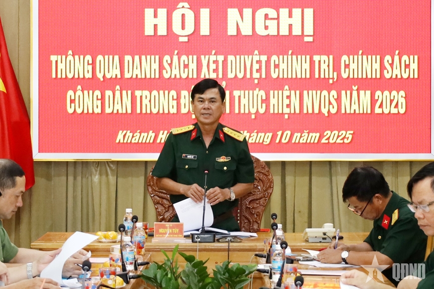 Năm 2026, để bảo đảm cho công tác tuyển quân năm 2026, Hội đồng NVQS tỉnh đã tham mưu cho UBND tỉnh Khánh Hòa ban hành đầy đủ các chỉ thị, quyết định, kế hoạch, hướng dẫn triển khai thực hiện; kịp thời kiện toàn Hội đồng NVQS các cấp đúng, đủ thành phần theo quy định; chỉ đạo UBND các xã, phường tiến hành hướng dẫn tổ chức bình cử, đề xuất cấp thôn, tổ chức xét duyệt chính trị, chính sách và tổ chức sơ tuyển đúng quy định.