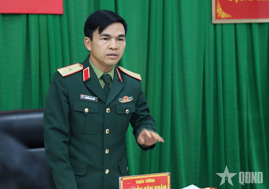 | Thiếu tướng Nguyễn Văn Xuân phát biểu tại buổi làm việc. |