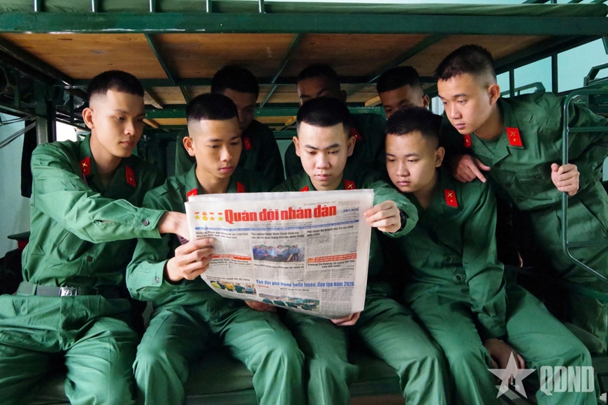 | Chiến sĩ mới đọc báo. |