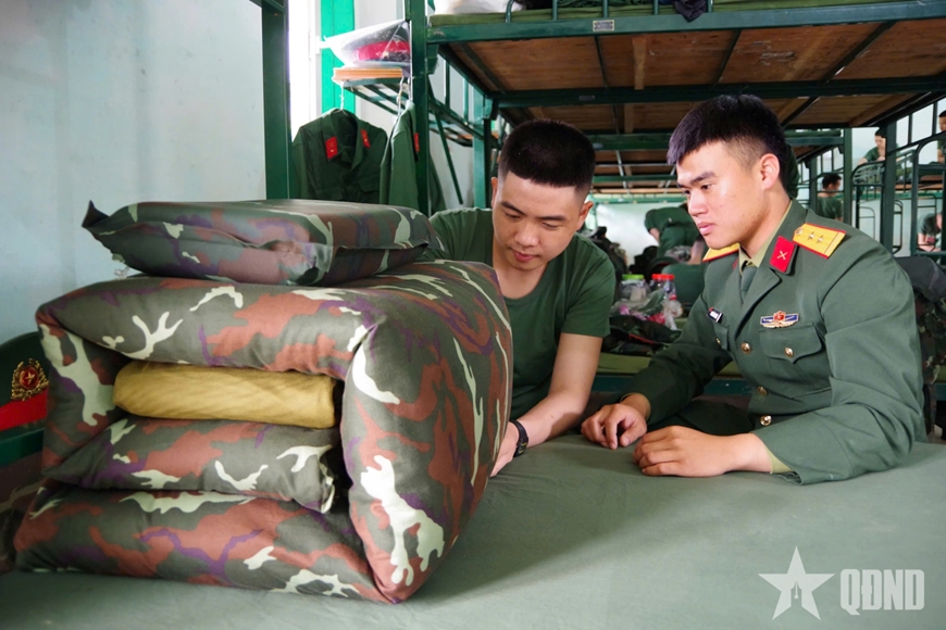 | Hướng dẫn sắp xếp nội vụ, vệ sinh cho chiến sĩ mới. |