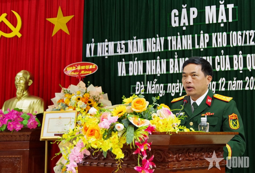 Thượng tá Nguyễn Quang Kiên, Phó bí thư Đảng ủy, Chủ nhiệm Kho K83 đọc diễn văn kỷ niệm.