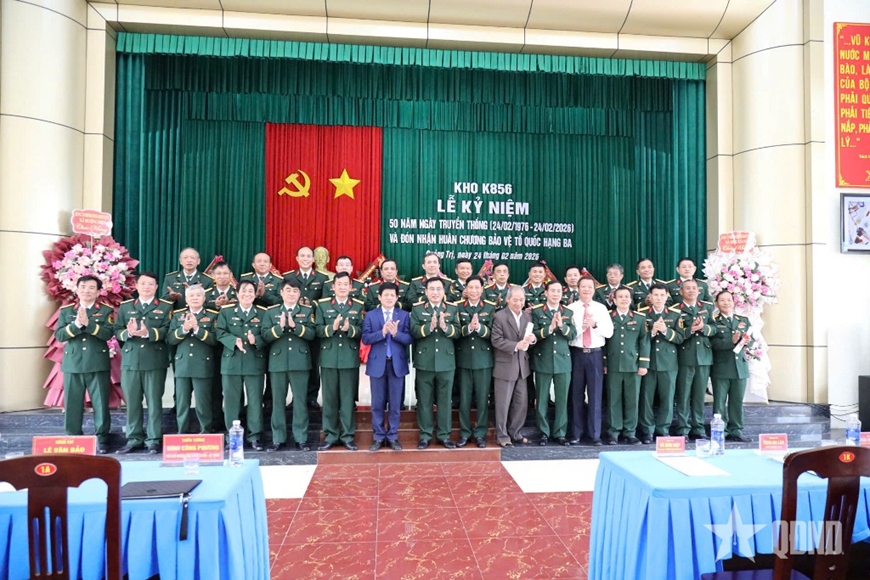 Nhân dịp này, Kho K856 vinh dự đón nhận Huân chương Bảo vệ Tổ quốc hạng Ba do Nhà nước trao tặng và Thư khen của Bộ Quốc phòng, ghi nhận những đóng góp bền bỉ, thầm lặng của nhiều thế hệ cán bộ, chiến sĩ trong sự nghiệp bảo vệ Tổ quốc.