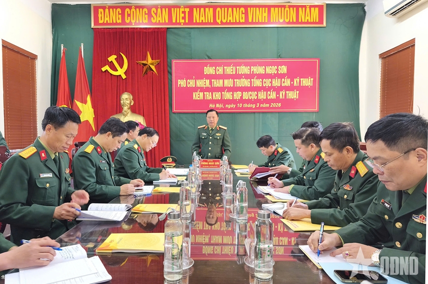 Ngày 10-3, Thiếu tướng Phùng Ngọc Sơn, Phó chủ nhiệm, Tham mưu trưởng Tổng cục Hậu cần - Kỹ thuật đã kiểm tra các mặt công tác đối với Kho Tổng hợp 80 (Cục Hậu cần - Kỹ thuật).
