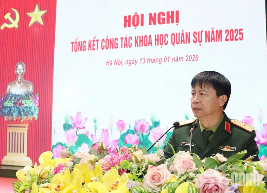 Phát biểu kết luận, Thiếu tướng, PGS, TS Nguyễn Văn Thanh, Phó hiệu trưởng Trường Sĩ quan Lục quân 1 yêu cầu năm 2026 tiếp tục đẩy mạnh nghiên cứu khoa học quân sự theo hướng toàn diện, có trọng tâm, trọng điểm, bảo đảm chất lượng, tiến độ các đề tài, sáng kiến, tài liệu, giáo trình; góp phần nâng cao chất lượng đào tạo cán bộ trong tình hình mới.