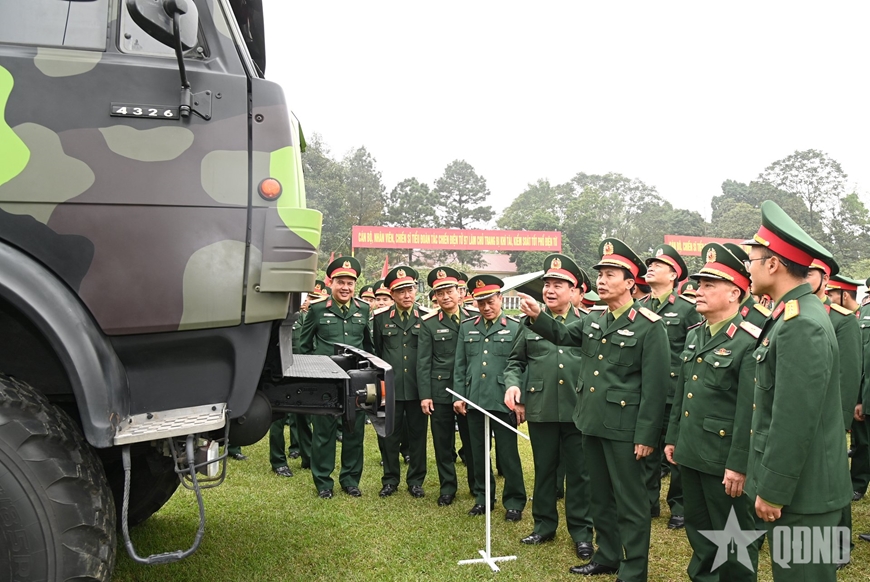| Các đại biểu tham quan mô hình, vật chất huấn luyện. |
