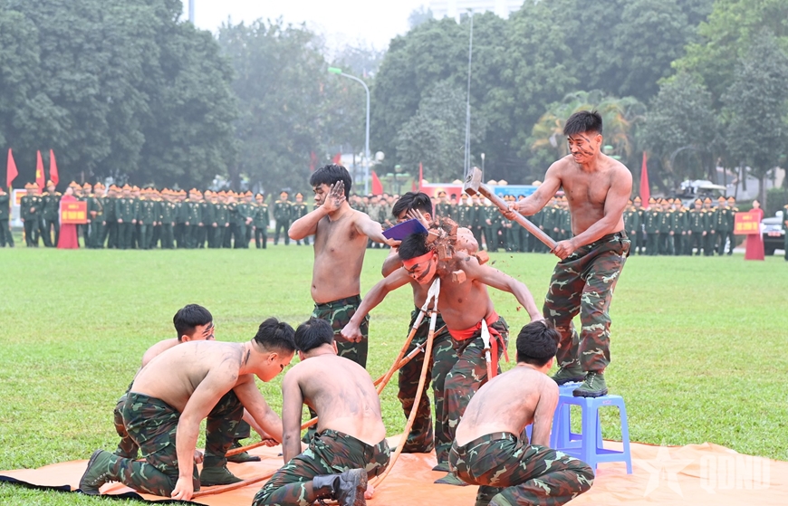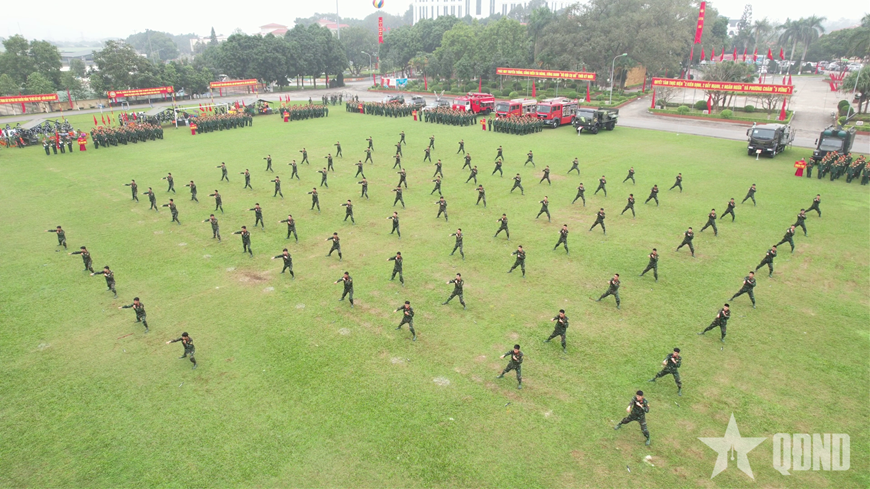 | Biểu diễn võ thuật và xử trí các tình huống tại Lễ ra quân huấn luyện. |