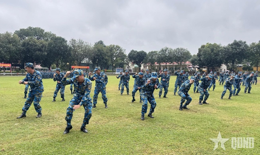 Đồng diễn võ thể dục tại lễ ra quân huấn luyện.