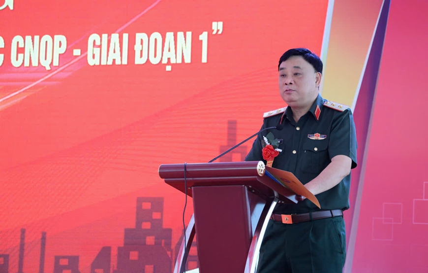 | Trung tướng Hồ Quang Tuấn, Chủ nhiệm Tổng cục Công nghiệp Quốc phòng phát biểu tại lễ khởi công. |