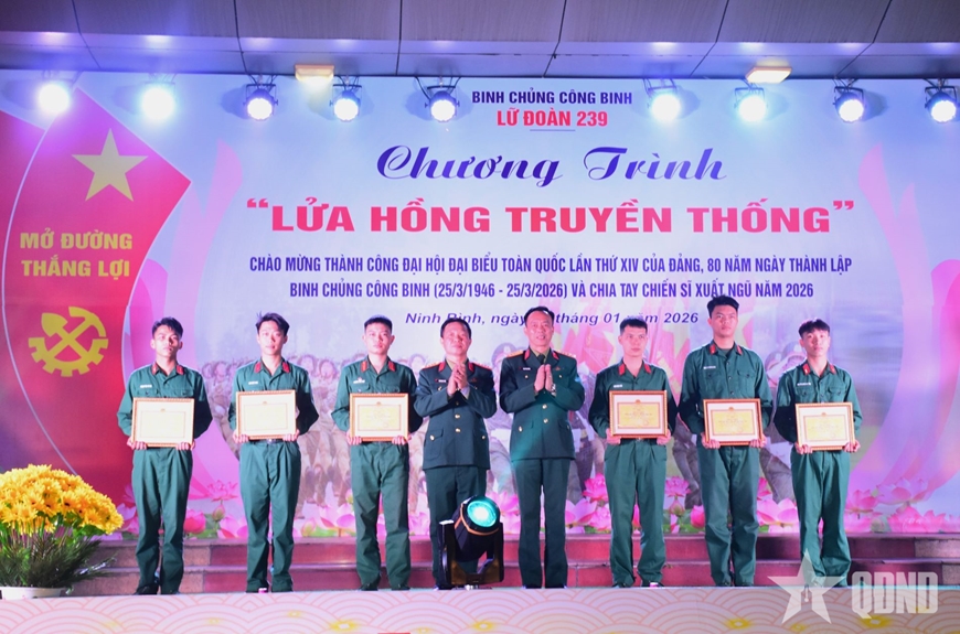 Trong 2 năm 2024, 2025, Lữ đoàn 239 đã giành được nhiều thành tích xuất sắc, được Binh chủng Công binh, Bộ Quốc phòng ghi nhận. Thành tích đó có sự đóng góp của các đồng chí chiến sĩ chuẩn bị hoàn thành nghĩa vụ quân sự. Trong chương trình, Đảng ủy, chỉ huy Lữ đoàn 239 đã biểu dương, khen thưởng 6 chiến sĩ tiêu biểu có thành tích xuất sắc trong huấn luyện, sẵn sàng chiến đấu, xây dựng đơn vị và tham gia các nhiệm vụ quan trọng, trong đó có nhiệm vụ A80. Đây là những tấm gương sáng về tinh thần trách nhiệm, ý chí phấn đấu, vượt qua khó khăn, góp phần tô thắm thêm truyền thống vẻ vang của đơn vị.