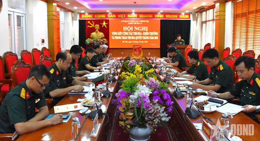 Báo cáo tại hội nghị, Đại tá Hoàng Văn Trường, Phó tổng biên tập Tạp chí Quốc phòng toàn dân cho biết: Trong năm 2025, Đảng ủy, chỉ huy các cơ quan trong Khối thi đua 4 luôn quán triệt sâu kỹ các chỉ thị, hướng dẫn của cấp trên về công tác TĐKT; lãnh đạo, chỉ đạo thực hiện tốt nội dung chỉ tiêu phong trào thi đua năm 2025 và các đợt thi đua cao điểm đạt hiệu quả cao. Các phong trào thi đua đã tập trung hướng vào thực hiện nhiệm vụ chính trị của các cơ quan, trọng tâm là kỷ niệm các ngày lễ lớn và sự kiện lịch sử quan trọng trong năm như: Kỷ niệm 50 năm Ngày giải phóng miền Nam, thống nhất đất nước; kỷ niệm 100 năm Ngày báo chí cách mạng Việt Nam; kỷ niệm 80 năm Cách mạng Tháng Tám thành công và Quốc khánh nước Cộng hòa xã hội chủ nghĩa Việt Nam.