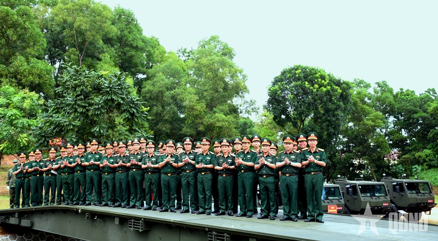 Các đại biểu dự hội nghị tổng kết tham quan trình diễn bắc cầu MS-20S và AM-50S tại Lữ đoàn 229 (Binh chủng Công binh). |