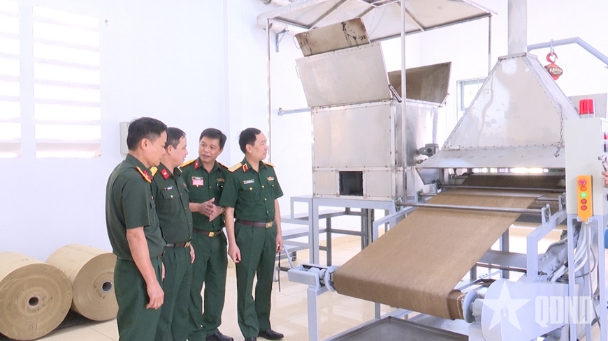 | Đoàn kiểm tra tham quan sáng kiến cải tiến kỹ thuật của đơn vị. |
