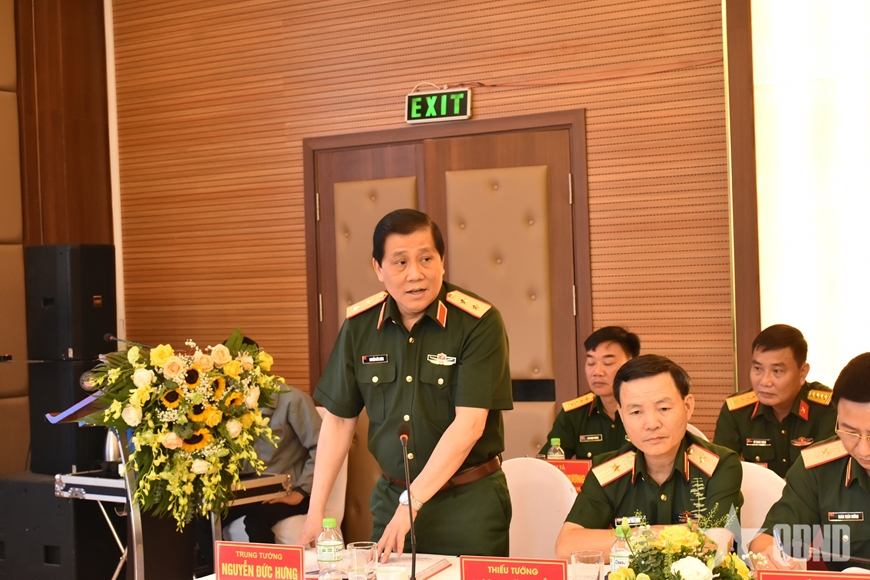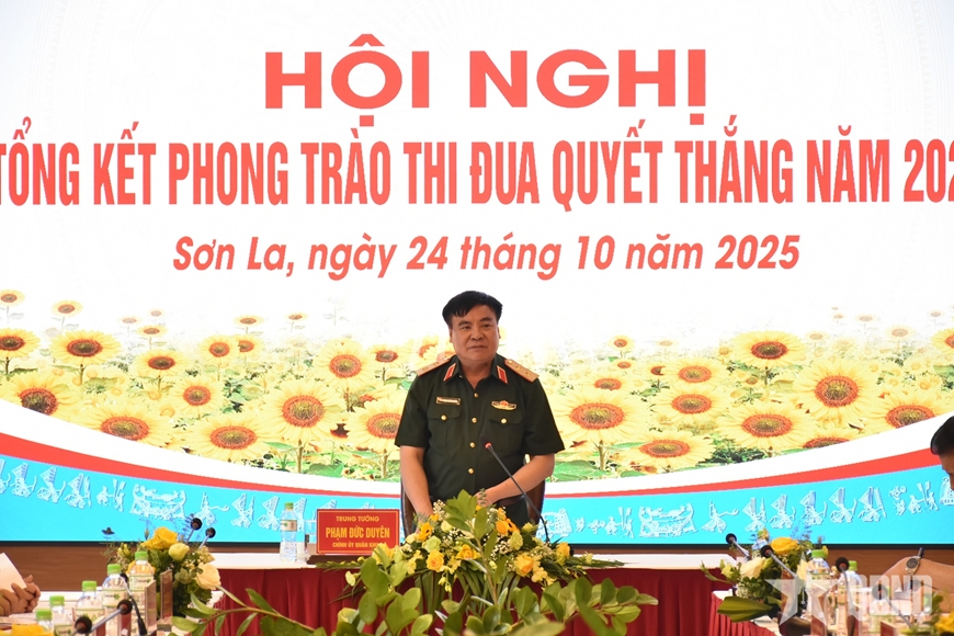 | Trung tướng Phạm Đức Duyên, Bí thư Đảng ủy, Chính ủy Quân khu 2, đơn vị Khối trưởng Khối thi đua năm 2025 chủ trì hội nghị. |