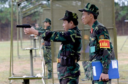 Cán bộ tham gia kiểm tra nội dung bắn súng K54 bài 1. Ảnh: TUẤN HUY