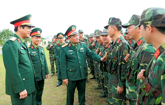 Thượng tướng Nguyễn Phương Nam động viên cán bộ Đại đội Trinh sát Đặc nhiệm Bộ CHQS tỉnh Hưng Yên. |
