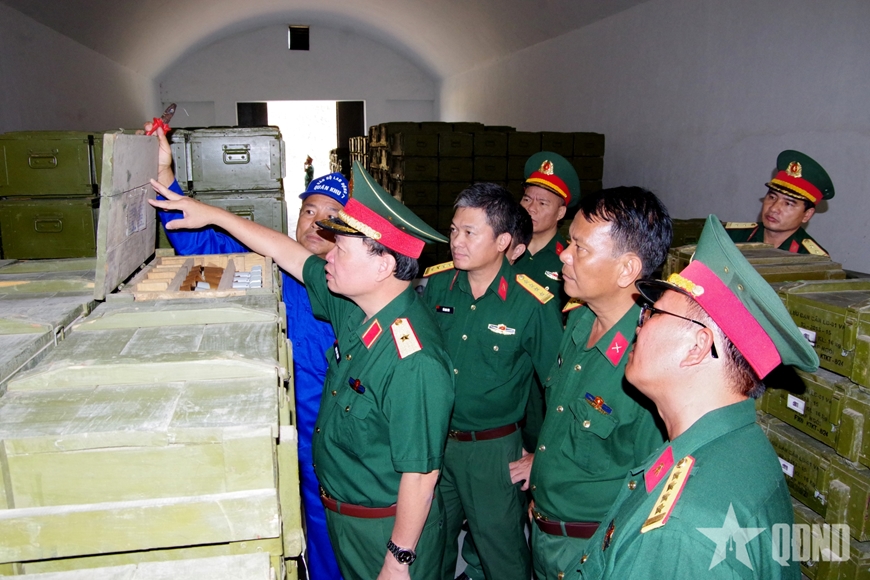 | Kiểm tra sắp xếp đạn dược trong kho. |