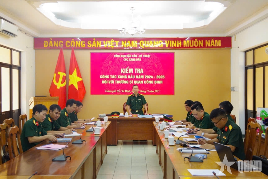 Từ ngày 27 đến 28-11, đoàn kiểm tra của Cục Xăng dầu (Tổng cục Hậu cần - Kỹ thuật) do Đại tá Mai Xuân Thành, Phó cục trưởng Cục Xăng dầu làm trưởng đoàn, đã tiến hành kiểm tra kết quả công tác xăng dầu năm 2024-2025 tại Trường Sĩ quan Công binh (Binh chủng Công binh).