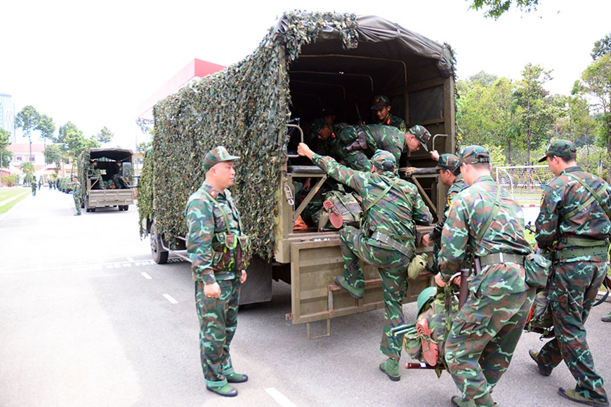 | Các lực lượng nhanh chóng cơ động khi luyện tập chuyển trạng thái SSCĐ. |