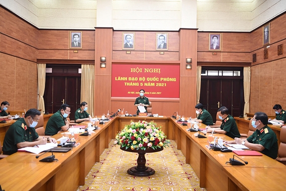 Hội nghị đánh giá, trong tháng 5-2021, Quân ủy Trung ương, Bộ Quốc phòng đã lãnh đạo, chỉ đạo toàn quân thực hiện quyết liệt, hoàn thành toàn diện các nhiệm vụ đã đề ra, trong đó có nhiều nhiệm vụ hoàn thành tốt, một số nhiệm vụ hoàn thành xuất sắc. Bộ Quốc phòng đã chỉ đạo toàn quân duy trì nghiêm chế độ trực SSCĐ, nắm chắc tình hình, xử lý kịp thời các tình huống, không để bị động, bất ngờ; phối hợp triển khai công tác SSCĐ, bảo vệ an ninh, an toàn bầu cử đại biểu Quốc hội khóa XV và đại biểu HĐND các cấp nhiệm kỳ 2021-2026; triển khai huấn luyện các đối tượng theo đúng chương trình, kế hoạch, bảo đảm chất lượng, an toàn; duy trì nghiêm chế độ, nền nếp chính quy, quản lý kỷ luật. Dưới sự chỉ đạo kịp thời, thường xuyên của Bộ Quốc phòng, Bộ đội Biên phòng và Cảnh sát biển đã tăng cường kiểm soát, đấu tranh hiệu quả với tội phạm ma túy, buôn lậu, gian lận thương mại, hàng giả. Bộ Quốc phòng đã chỉ đạo, hướng dẫn các cơ quan, đơn vị triển khai các hoạt động tham gia bầu cử đại biểu Quốc hội khóa XV và HĐND các cấp nhiệm kỳ 2021-2026 chặt chẽ, đúng quy trình, an toàn, đúng luật, với 100% cử tri tham gia bầu cử. Công tác hội nhập quốc tế và đối ngoại quốc phòng được triển khai linh hoạt, hiệu quả, đúng kế hoạch. Công tác hậu cần bảo đảm kịp thời cho các nhiệm vụ; cùng với tổ chức tiêm vắc-xin cho bộ đội, đã tích cực triển khai lực lượng giúp các địa phương phòng chống dịch (PCD) Covid-19. Công tác kỹ thuật bảo đảm đầy đủ, đồng bộ, kịp thời vũ khí, trang bị kỹ thuật (VKTBKT) cho các nhiệm vụ; đẩy mạnh nghiên cứu sản xuất, sửa chữa, cải tiến VKTBKT.