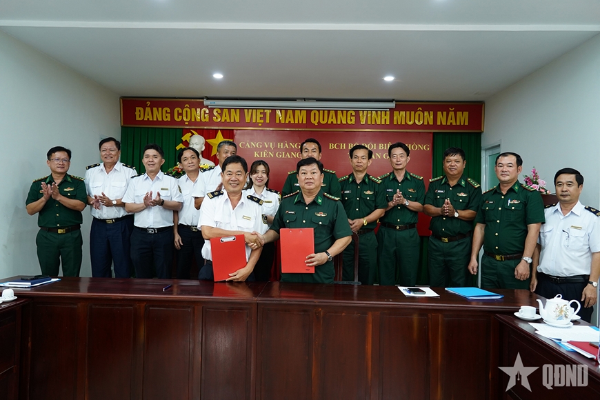 Chiều 23-3, Cảng vụ Hàng hải Kiên Giang và Ban Chỉ huy Bộ đội Biên phòng tỉnh An Giang tổ chức lễ ký kết quy chế phối hợp nhằm tăng cường hiệu quả quản lý nhà nước trong lĩnh vực hàng hải, đường thủy nội địa và công tác biên phòng.