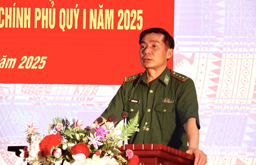 Đại diện Bộ CHQS tỉnh Lai Châu phát biểu tại hội nghị.
