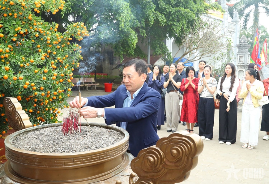 Thiếu tướng Lê Văn Thuận và các đại biểu dâng hương tưởng nhớ công ơn Hai Bà Trưng và các vị anh hùng dân tộc.