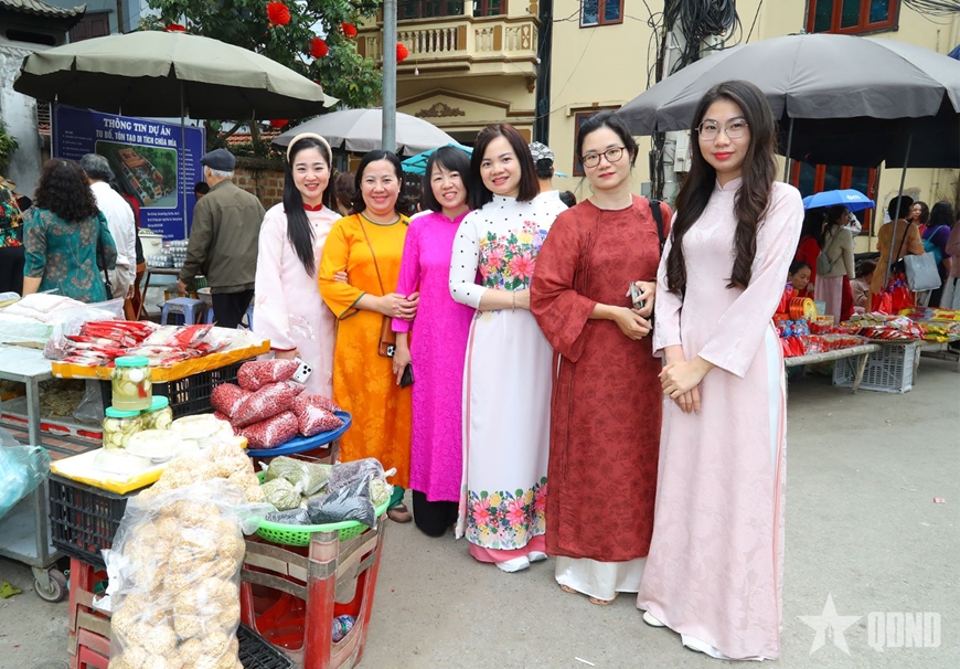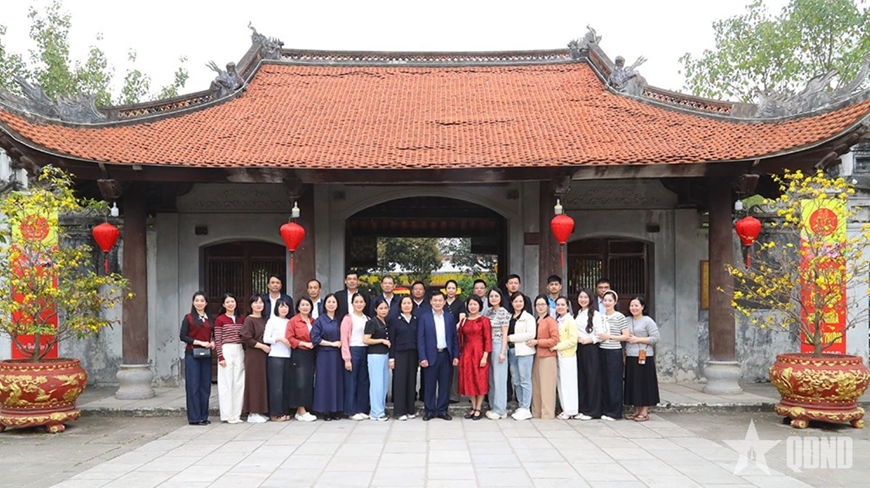 | Cán bộ, hội viên Hội Phụ nữ Văn phòng Bộ Quốc phòng tham quan Làng cổ Đường Lâm. |