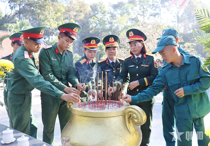| Các cán bộ, chiến sĩ dâng hương khu di tích. |