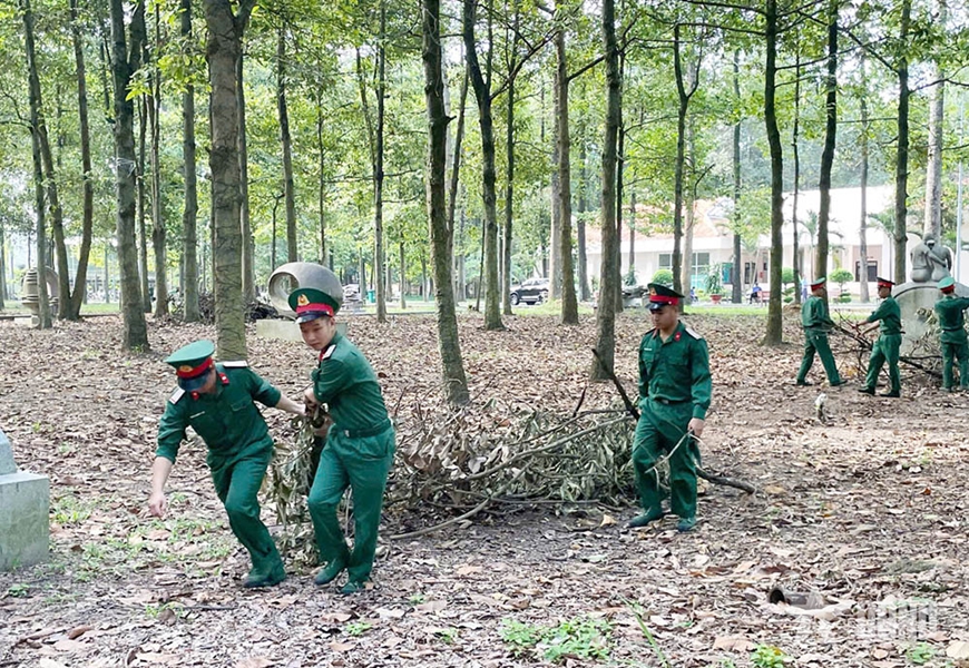 | Dọn vệ sinh khu di tích. |