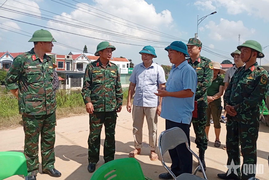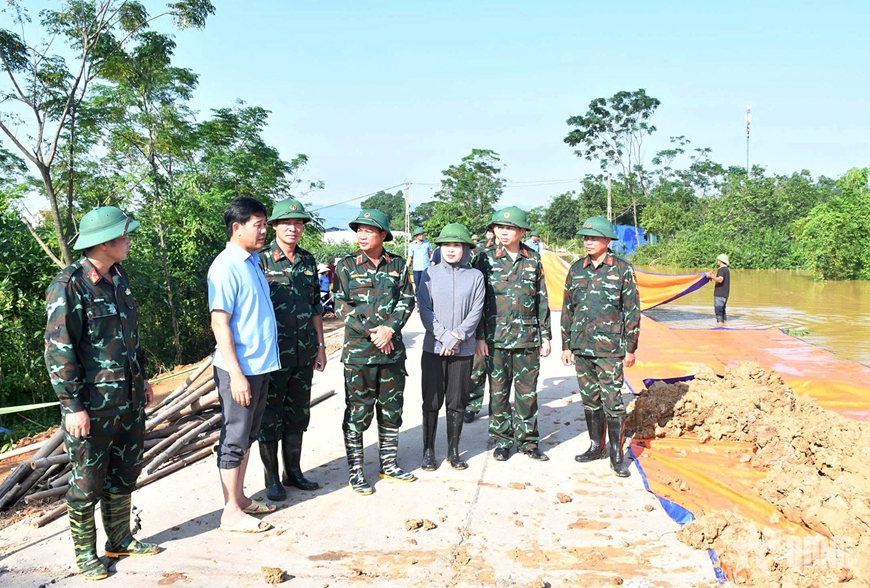 Tại khu vực ngập úng của xã Đa Phúc và phường Trung Thành, đoàn công tác đã trực tiếp nắm tình hình thiệt hại của nhân dân và địa phương; đồng thời, động viên, kiểm tra công tác ứng trực, cứu hộ, di dời bà con ra khỏi vùng nguy hiểm của bộ đội Trung đoàn 141 và Trung đoàn 209.