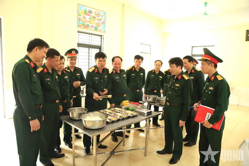| Lãnh đạo Tổng cục Hậu cần-Kỹ thuật kiểm tra công tác bảo đảm hậu cần cho chiến sĩ mới. |