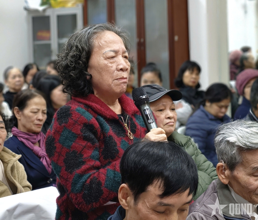 | Cử tri Nguyễn Thị Miên phát biểu ý kiến. |