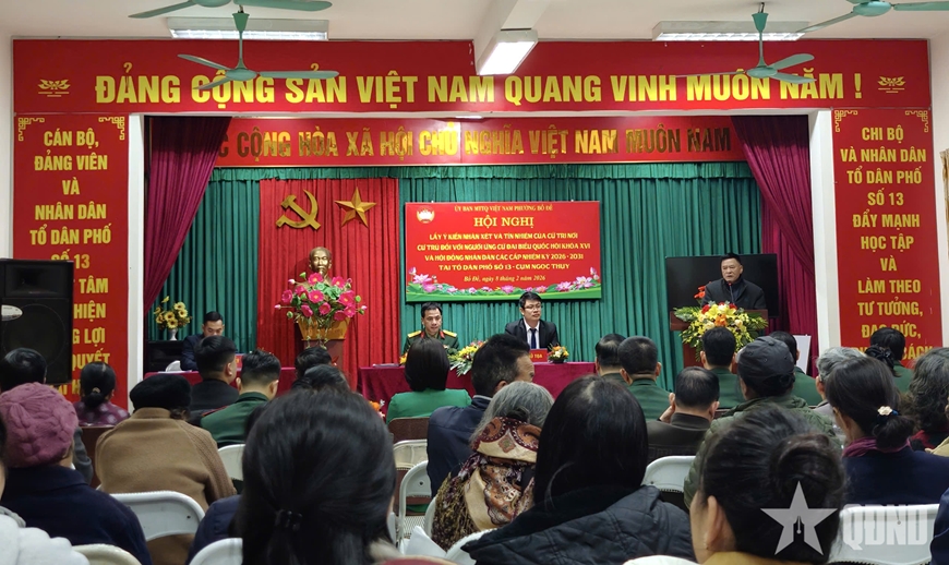 Qua lắng nghe các ý kiến phát biểu, 100% cử tri tổ dân phố 13, phường Bồ Đề tham dự hội nghị đã nhất trí giới thiệu Đại tá Phạm Đức Hoài, Phó cục trưởng Cục Pháp chế Bộ Quốc phòng tham gia ứng cử đại biểu Quốc hội khóa XVI.