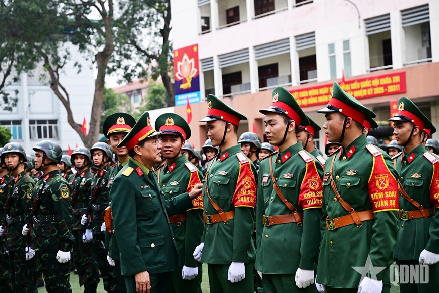 | Nội dung duyệt đội ngũ tại Lễ ra quân huấn luyện. |