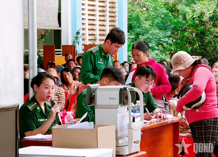 | Phối hợp khám bệnh, cấp thuốc miễn phí cho người dân tại đồn biên phòng. |