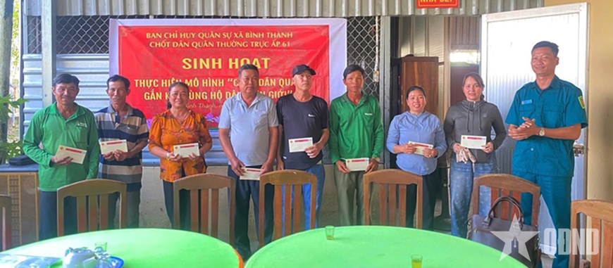 | Chốt dân quân biên giới họp mặt, tặng quà các gia đình liền kề chốt dân quân. |