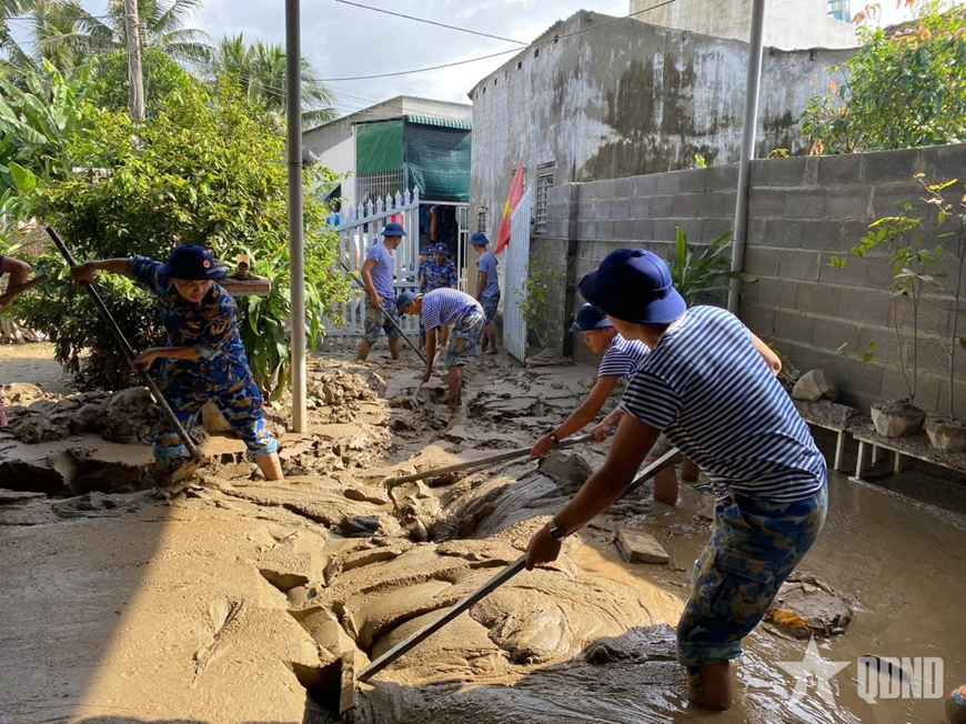 Ngày 25-11, Lữ đoàn 101 (Vùng 4 Hải quân) tiếp tục điều động gần 200 cán bộ, chiến sĩ cơ động đến thôn Trung (phường Bắc Nha Trang, tỉnh Khánh Hòa) hỗ trợ nhân dân khắc phục hậu quả mưa lũ, phối hợp với chính quyền địa phương trao 700 suất quà động viên, chia sẻ khó khăn với bà con.