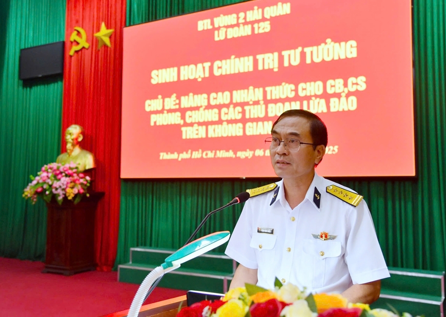 Phát biểu chỉ đạo, Đại tá Phạm Minh Chiến, Bí thư Đảng ủy, Chính ủy Lữ đoàn 125 yêu cầu các cơ quan, đơn vị và cán bộ, chiến sĩ tăng cường tuyên truyền, giáo dục, quản lý việc sử dụng mạng xã hội trong đơn vị; mỗi quân nhân phải tuyệt đối tuân thủ quy định bảo mật thông tin, không đăng tải, bình luận, chia sẻ thông tin không chính thống hoặc liên quan tới tổ chức, biên chế, nhiệm vụ đơn vị; nâng cao tinh thần cảnh giác, chủ động phòng ngừa tự bảo vệ mình và đồng đội, không để bị lôi kéo, dụ dỗ, mất cảnh giác, góp phần “tạo miễn dịch tập thể” trước các chiêu trò tinh vi của tội phạm công nghệ cao.