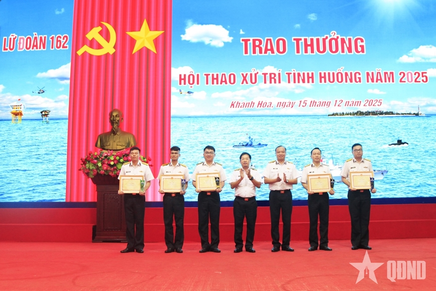 Dịp này, Lữ đoàn 162 trao thưởng cho 5 kíp tàu đạt thành tích xuất sắc trong hội thao xử trí tình huống của kíp trực năm 2025.