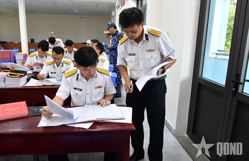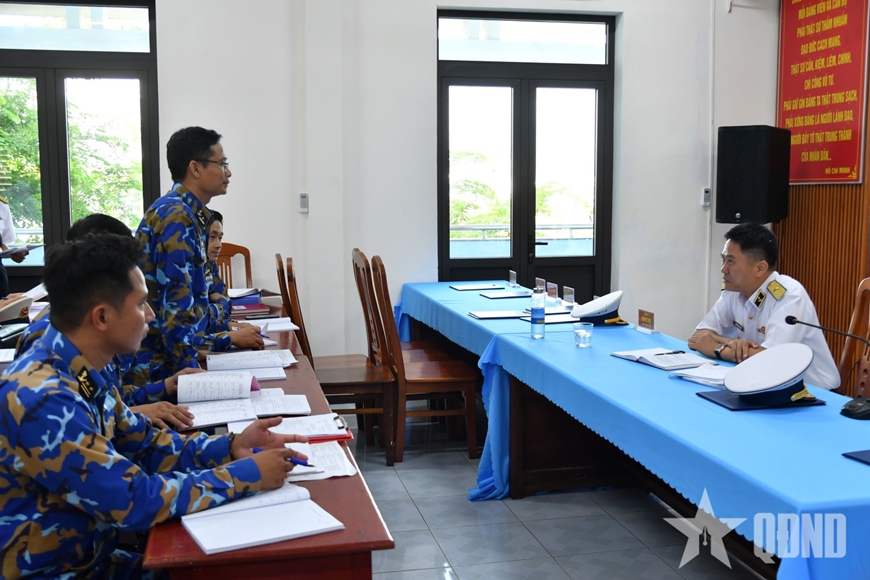 Đồng chí Chính ủy Vùng 2 Hải quân kiểm tra nhận thức của cán bộ chính trị.