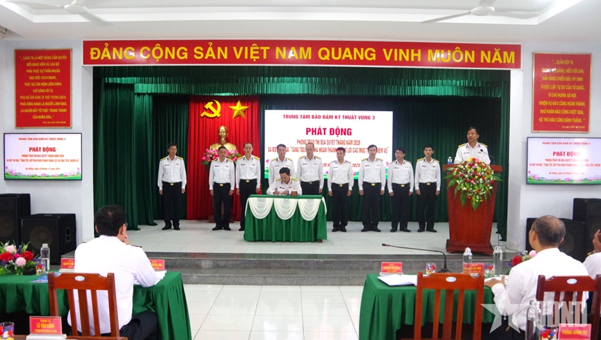 * Năm 2025, Trung tâm Bảo đảm kỹ thuật (Vùng 3 Hải quân) đã duy trì nghiêm nền nếp trực sẵn sàng chiến đấu (SSCĐ), bảo đảm đầy đủ, kịp thời các loại đạn đặc chủng, vũ khí trang bị kỹ thuật (VKTBKT) cho nhiệm vụ huấn luyện, diễn tập, bắn đạn thật và các nhiệm vụ đột xuất. Công tác giáo dục chính trị, tuyên truyền phổ biến pháp luật được triển khai đồng bộ; các khoa mục huấn luyện kỹ thuật được tổ chức chặt chẽ, đúng kế hoạch, chất lượng được nâng lên. Đơn vị đã triển khai quyết liệt nhiệm vụ phát triển khoa học công nghệ, đổi mới sáng tạo và chuyển đổi số; tổ chức phong trào “Bình dân học vụ số” và thi đánh giá kiến thức kỹ năng số cho 100% quân nhân đạt kết quả tốt.
