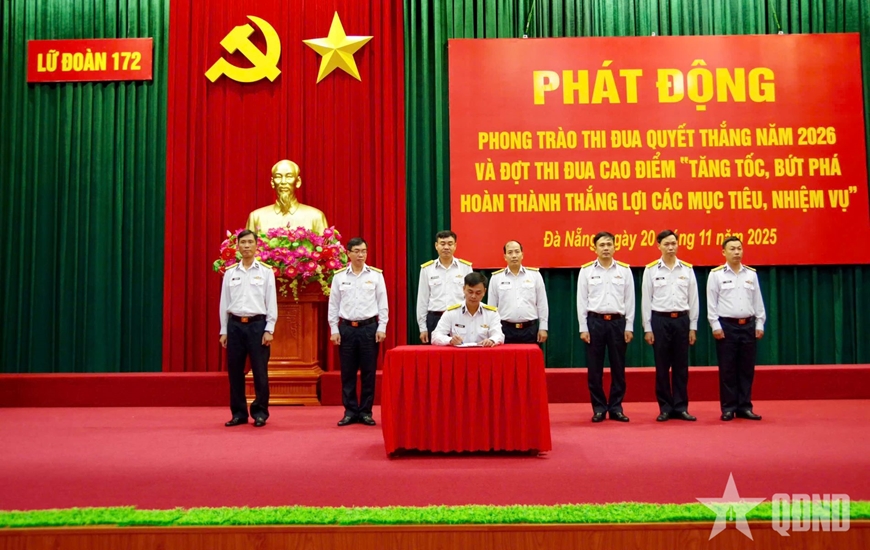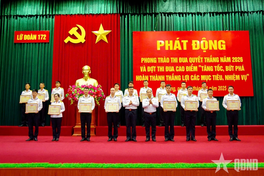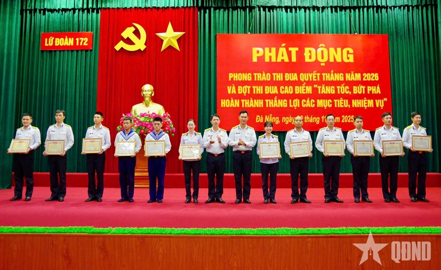 Nhân dịp này, Lữ đoàn 172 và Trung tâm Bảo đảm kỹ thuật (Vùng 3 Hải quân) tổ chức tổng kết Phong trào Thi đua Quyết thắng, khen thưởng các tập thể, cá nhân có thành tích xuất sắc trong năm 2025; đồng thời phát động Phong trào Thi đua Quyết thắng năm 2026 và đợt thi đua cao điểm “Tăng tốc, bứt phá, hoàn thành thắng lợi các mục tiêu, nhiệm vụ chào mừng kỷ niệm 80 năm Ngày Tổng tuyển cử đầu tiên bầu Quốc hội Việt Nam (6-1-1946/6-1-2026) và Đại hội đại biểu toàn quốc lần thứ XIV của Đảng”.