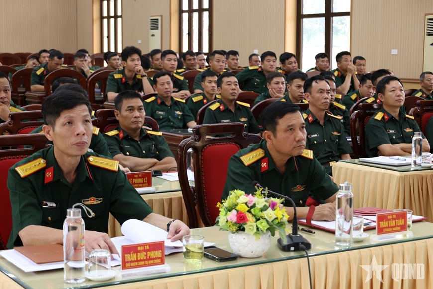 | Đại tá Nguyễn Ngọc Trung, Phó tham mưu trưởng Binh chủng Công binh phát biểu tại hội nghị. |