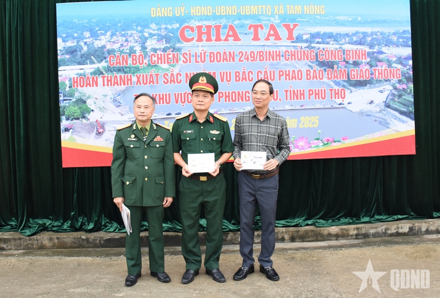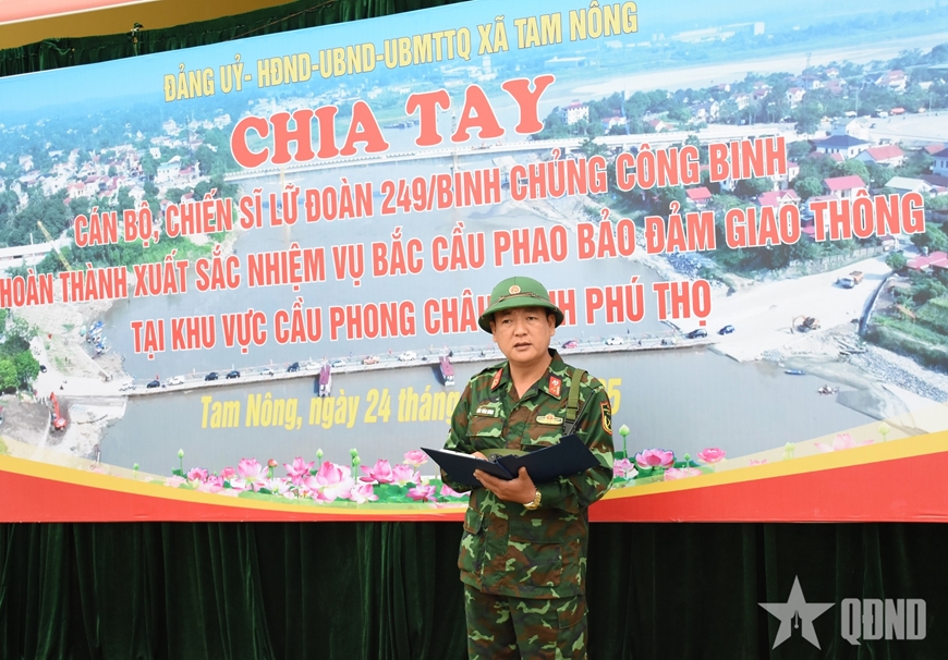 Phát biểu tại buổi chia tay, Thượng tá Đào Văn Hưng, Phó lữ đoàn trưởng Lữ đoàn 249 nhấn mạnh: Trong suốt thời gian đơn vị thực hiện nhiệm vụ, cùng với sự quan tâm lãnh đạo, chỉ đạo của Chính phủ, Quân ủy Trung ương, Bộ Quốc phòng, Đảng ủy, Bộ tư lệnh Binh chủng Công binh, đơn vị luôn nhận được sự quan tâm, giúp đỡ của cấp ủy, chính quyền, cơ quan quân sự, công an và nhân dân địa phương; sự phối hợp hiệp đồng, giúp đỡ của các cơ quan, đơn vị trong và ngoài Quân đội. Đặc biệt, tình cảm gắn bó giữa cấp ủy, chính quyền, nhân dân tỉnh Phú Thọ với Lữ đoàn 249 là nguồn cổ vũ to lớn để cán bộ, chiến sĩ Lữ đoàn hoàn thành xuất sắc nhiệm vụ được giao.