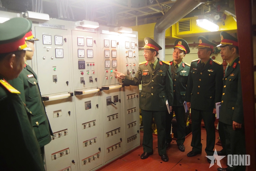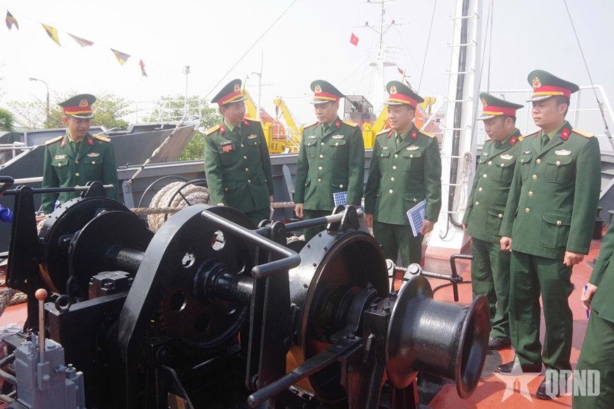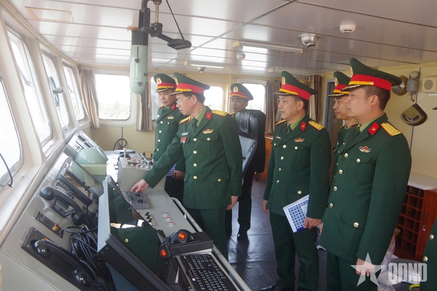 Đoàn công tác Lữ đoàn 649 kiểm tra kỹ thuật phương tiện và trang bị bảo đảm an toàn hàng hải trước giờ Tàu 51-11-75 xuất bến thực hiện nhiệm vụ.