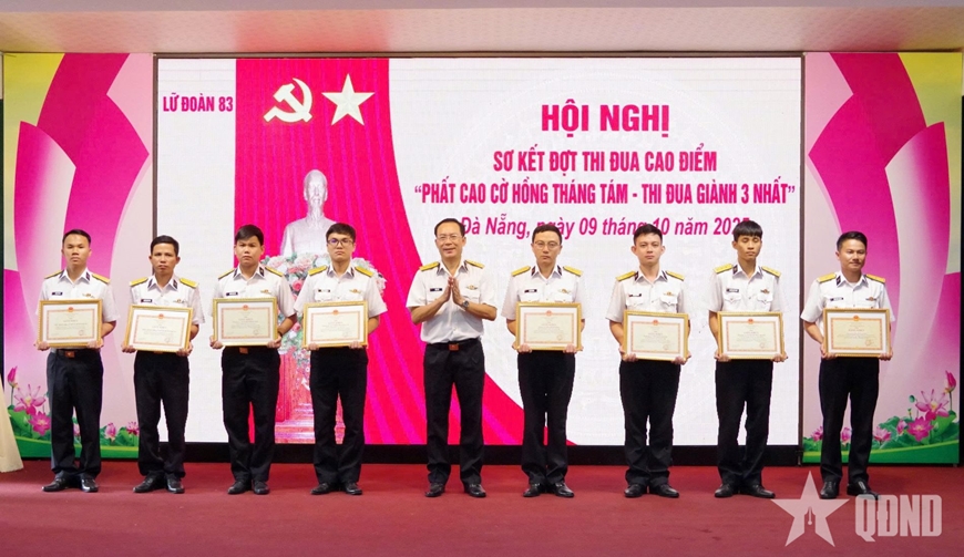 Ngày 9-10, tại TP Đà Nẵng, Lữ đoàn 83 (Quân chủng Hải quân tổ) chức Hội nghị sơ kết đợt thi đua cao điểm “Phất cao cờ hồng Tháng Tám - Thi đua giành 3 nhất” chào mừng kỷ niệm 80 năm Cách mạng Tháng Tám và Quốc khánh 2-9, chào mừng Đại hội đại biểu Đảng bộ Quân chủng Hải quân lần thứ XIV, Đại hội Đại biểu Đảng bộ Quân đội lần thứ XII, Đại hội thi đua Quyết thắng toàn quân lần thứ XI. Đại tá Trần Thức, Bí thư Đảng ủy, Chính ủy Lữ đoàn dự và chỉ đạo.