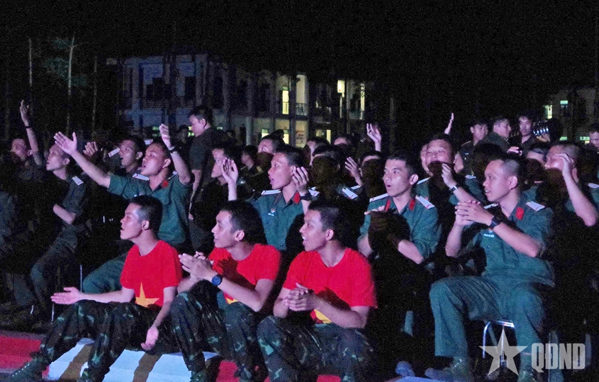 Bộ đội Lữ đoàn 87 tự tin trình diễn các tiết mục văn nghệ.