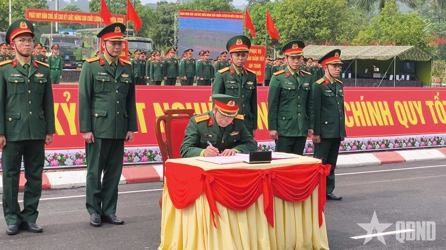 Tại buổi lễ, Lữ đoàn đã phát động đợt thi đua cao điểm chào mừng bầu cử đại biểu Quốc hội khóa XVI, bầu cử đại biểu HĐND các cấp nhiệm kỳ 2026-2031; Phong trào Thi đua “Toàn dân bảo vệ an ninh Tổ quốc”; kỷ niệm 136 năm Ngày sinh Chủ tịch Hồ Chí Minh, tạo khí thế sôi nổi ngay từ những ngày đầu ra quân huấn luyện. Đại diện các cơ quan, đơn vị trong Lữ đoàn đã ký kết giao ước thi đua, thể hiện quyết tâm hoàn thành xuất sắc các chỉ tiêu, nhiệm vụ huấn luyện năm 2026, góp phần xây dựng đơn vị vững mạnh toàn diện “mẫu mực, tiêu biểu”.