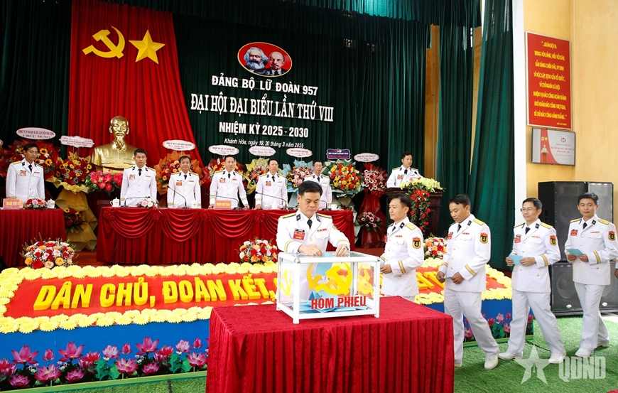 Đại hội đã bầu Ban chấp hành Đảng bộ nhiệm kỳ 2025-2030 và đoàn đại biểu dự Đại hội Đại biểu Đảng bộ Vùng 4 Hải quân lần thứ XII. Tại hội nghị lần thứ nhất, Ban chấp hành Đảng bộ Lữ đoàn 957 đã bầu Ban Thường vụ Đảng ủy, Bí thư Đảng ủy, Phó bí thư Đảng ủy; bầu Ủy ban kiểm tra và Chủ nhiệm Ủy ban kiểm tra với số phiếu tín nhiệm cao.